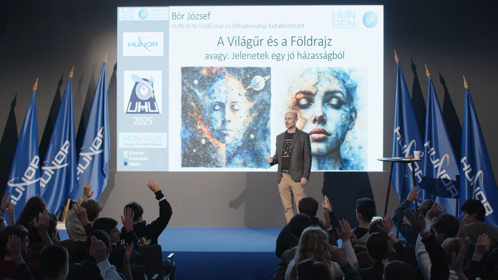A HUN-REN Földfizikai és Űrtudományi Kutatóintézetből Bór József adott elő a sorozat 6. részében „A világűr és a Földrajz – avagy jelenetek egy jó házasságból” címmel. A rendhagyó óra keretében röviden áttekintették a Föld és a Föld körüli térség fő tartományait és azok fontosabb és érdekes jellemzőit, majd a kutatóintézet tevékenységi köreihez kapcsolódóan sorba vették a földrajzi vonatkozással is bíró területeit a világűr felhasználásának és az ott folyó emberi tevékenységeknek. Az előadásban helyet kapott a kutatóhely UHU kísérletének bemutatása is, amely az Axiom Space 2025. június-júliusában megvalósult Ax-4 küldetésének a keretében légköri elektromos aktivitás világűrből, a Nemzetközi Űrállomásról való megfigyelését célozta.