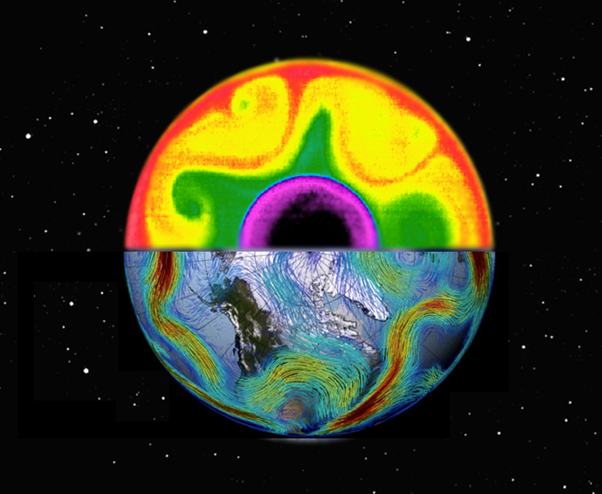 Based on the principle of hydrodynamic similarity, many key aspects of planet-scale geophysical fluid dynamic processes can be effectively modeled using simple laboratory setups. Atmospheric circulation patterns and the statistical properties of weather fluctuations influenced by the equator-to-pole temperature difference and the Coriolis effect are studied using differentially rotating and differentially heated experimental tanks. This approach facilitates the physical modeling of climate change-like non-equilibrium processes on Earth and other planets, and can contribute to the better understanding of a wide range of problems ranging from the superrotation of the atmosphere of Venus, through shear instabilities in Saturn’s north pole to the atmospheric convection of tidally locked exoplanets.