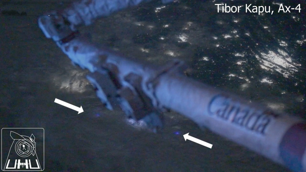 Kék pixeltündérek a Kína felett repülő Nemzetközi űrállomásról fényképezve 2025. július 4-én. Kapu Tibor felvételeinek részletei, Axiom Space Ax-4 misszió.